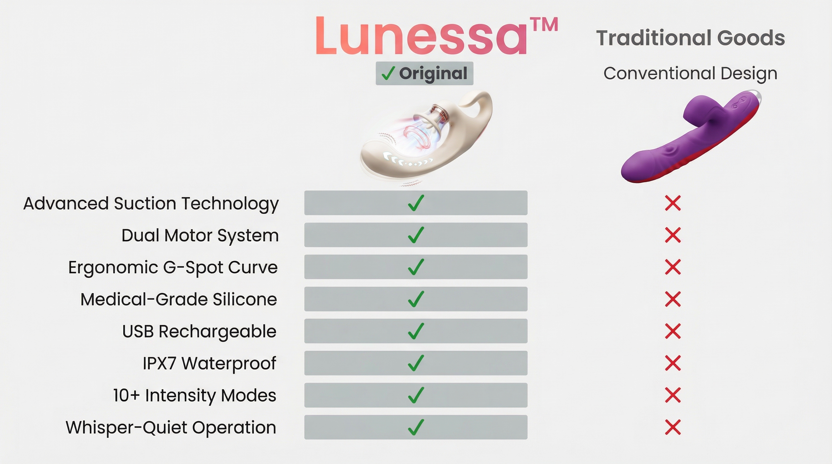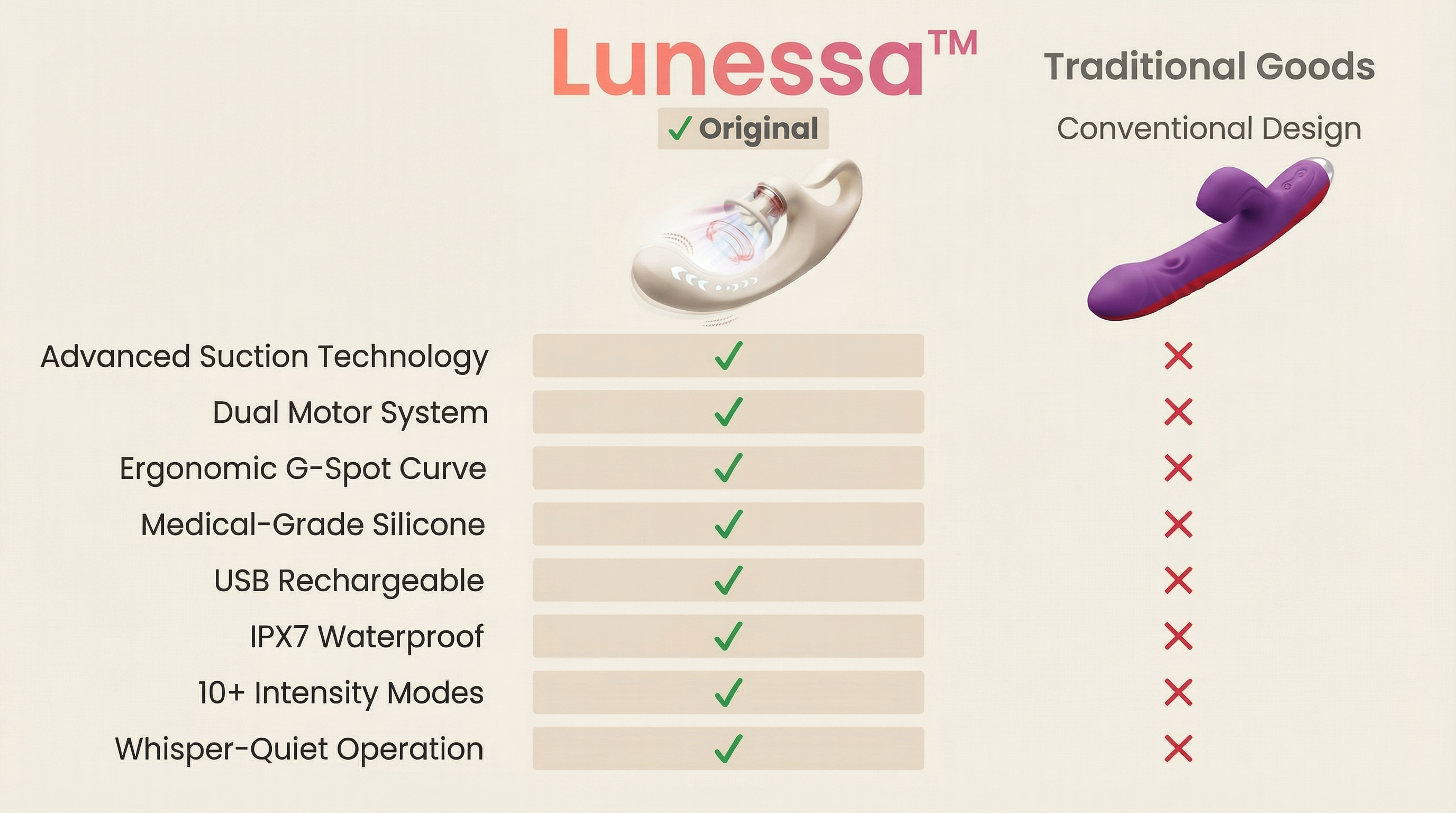 Scientifically awaken the sensitive nerves in your body.As your body gradually relaxes.Lunessa™ Gently penetrate and stimulate sensitive areas throughout the body.
