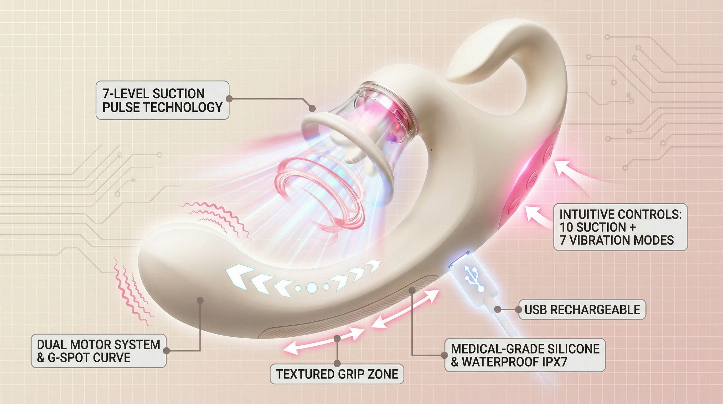 As the powerful motorized tip penetrates deep within you—while you simultaneously revel in clitoral stimulation and feel a lifelike penis thrusting vigorously deep inside—the exquisite pleasure is truly intoxicating.